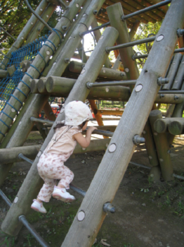 アスレチックにも慣れてきて、今度はこんな高いところに登ろうとしてますが・・・
