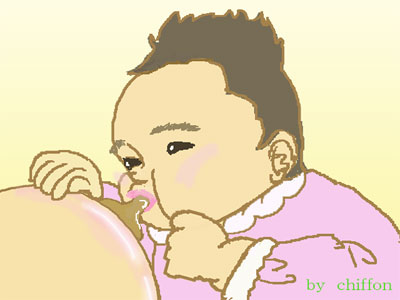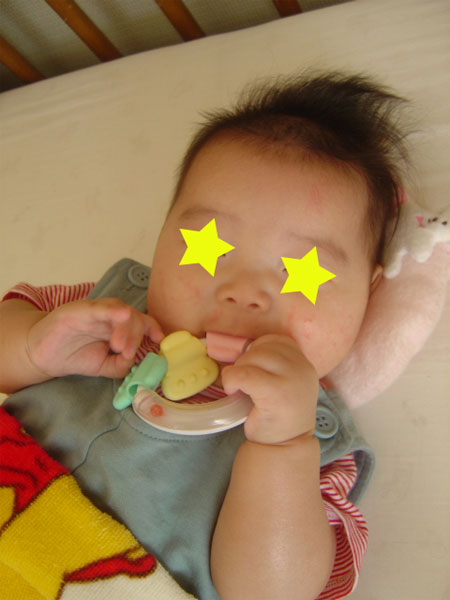 母乳のみで育ててるせいか、大きさの割りには重い固太り。