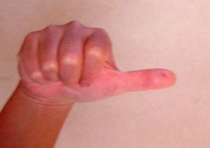 右の中指に続いて左の親指も。