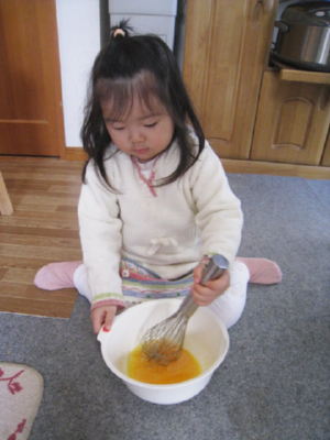マドレーヌを作る時、心羽もお手伝い♪