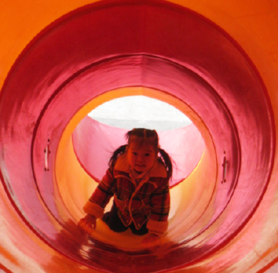 ここは覆いのある滑り台の中で~す!!