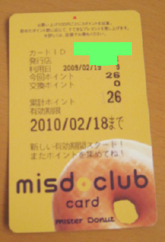 ずっと貯めてあった「ミスタードーナツ」のポイントがあったので