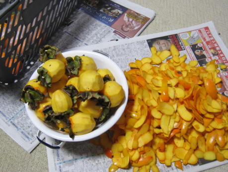 たくさんの柿の皮を剥いて、結んで吊るす作業がとっても楽しくできました。