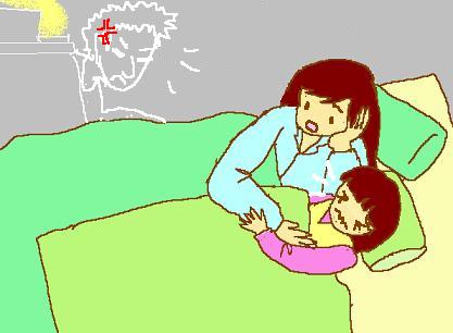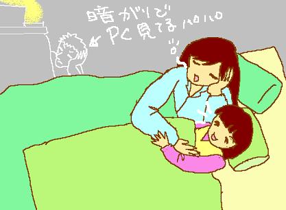 」と心羽を誘ってお布団に入った私。パパにお休みのチュ~