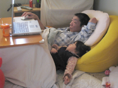 「目が覚めたらまたここに来て寝出した。」 とパパ。
