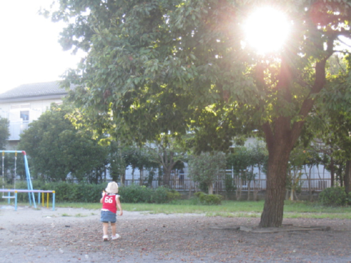 公園につくと、いつもあった大きな木からどんぐりが落ちてるのを見て