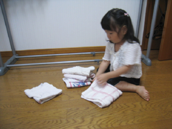 この後、ちゃんと他にも自分でたたんだハンドタオルの上に重ねて