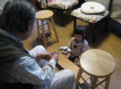 急いでおじいちゃんのお部屋に行って何か言ってます。