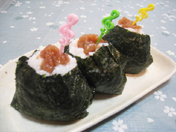 ある日、ご飯が残ったのでこのもらった梅干を入れておにぎりを作ってました。