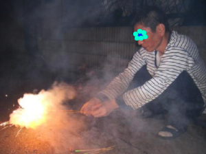 心羽のために煙い中、一生懸命花火に火をつけてくれました。