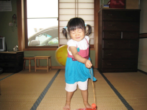 家に帰ってきてからずっとこの風船で遊んでた心羽。