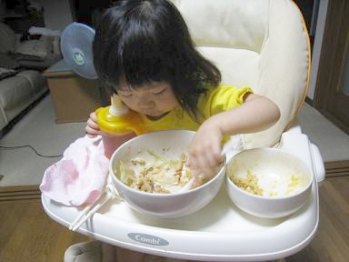 そんなママを見て、かわいそうに思ったのかご飯を少しすくって