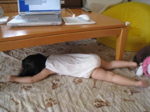 テーブルの下にもぐって、私に背中を掻いて欲しい仕草をするから