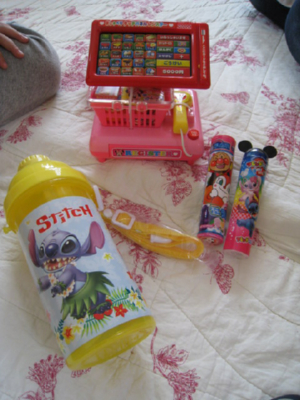 ミニーちゃんのレジスター と スティッチの水筒 と ラムネw