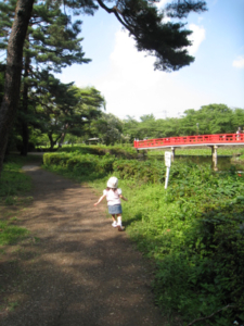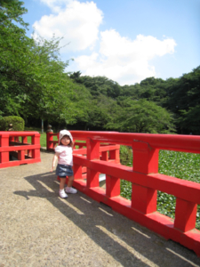 橋の下にはいたくさんの鯉や亀などが泳いでいる中、