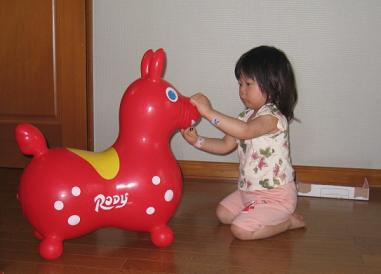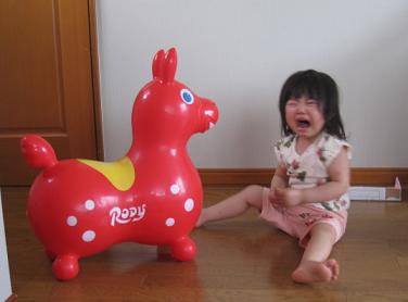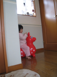壁の影においてあったロディーに乗って遊んでました。