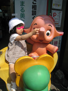 初めてサトちゃんに乗った心羽、歌とともに揺れるゾウさんが