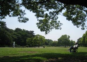 木漏れ日の下でお昼寝するおじさんも。