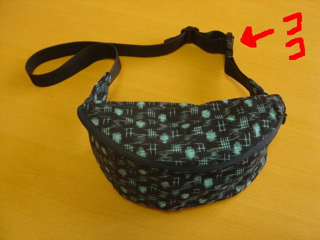 おじいちゃんのウエストポーチの留め金をカチンッ!