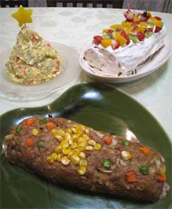 左上はツリー型のポテトサラダ。 パプリカやピーマンで彩りをつけました。