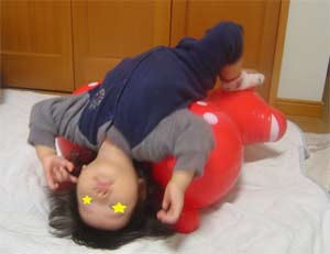 心羽、「パッカ、パッカ」と馬の走る様子を口まねしています