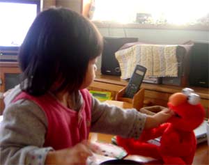 このエルモは声を立てて笑わないけど、抱きごこちがいいのかしら?