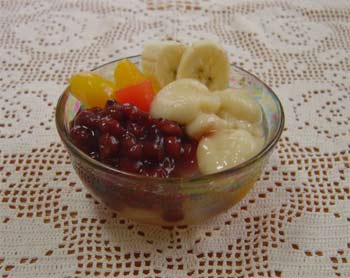 「豆腐白玉入りフルーツあんみつ」