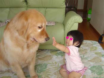 毎朝、キラキラ光るキレイな毛並みのゴールデンのワンちゃんを真ん中に