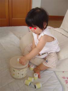 私の作った知育おもちゃで遊んでます。