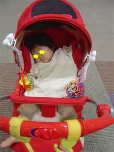そんなベビーカートに座ってご機嫌の心羽。