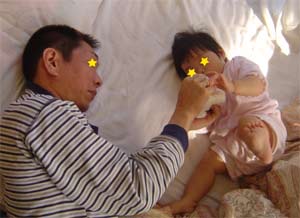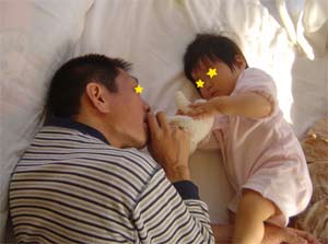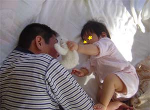 パパ: 「心羽、くまさんと遊んでるの? パパにも貸して