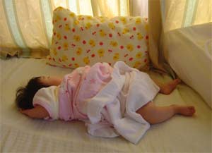 抱っこしてとばかりに手を伸ばしてくるので抱っこで寝かせようとすると