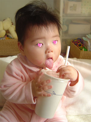 自分からお口をあけてコーンスープを飲みだしました!!