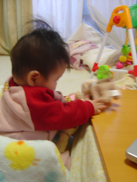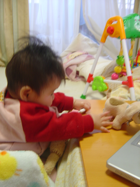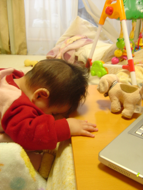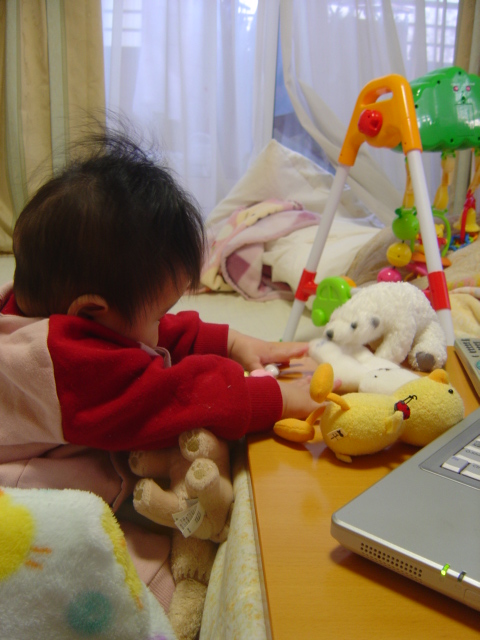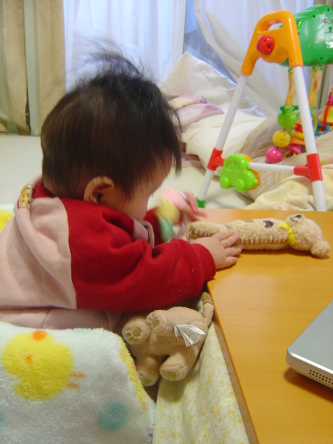 心羽が静かに遊んでるから私もPCをしていると、