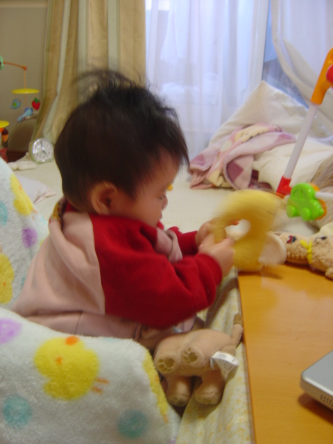 私がPCをしている間、一人で遊んでいた心羽