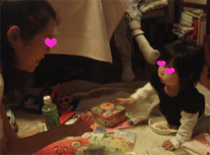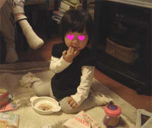 到着したご飯をみんなが食べていても私は心羽にまずご飯を食べさせていました。