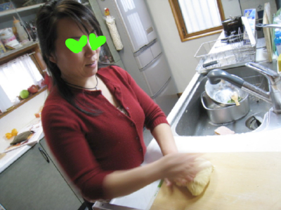 お互いにパン作りしてるときの写真を撮ったのを見て