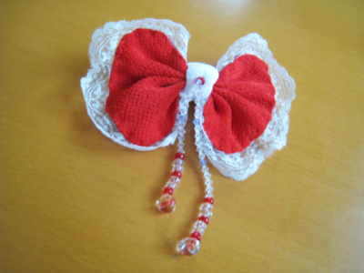 私のお下がりの浴衣とそれに合わせて作った髪飾りをつけて♪