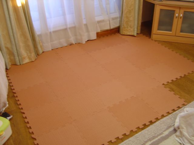 うちも色つきのマットひいてたよ~~ん。転ぼうが何しようがダイジョブ。でも、一応気はつけるけどね。