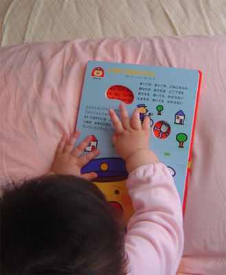 音が出る絵本なら、少しはジッとしてくれるかしら・・・??今度買ってこよっ