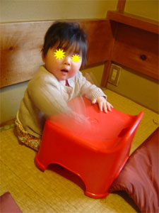 心羽ちゃんも、真っ赤なイスはタイコ代わりだったのね。。。ウチの坊も、迷わずやるね!!