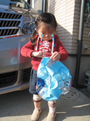 心羽はせっかくお気に入りだったスティッチのビーチボールを割られ、